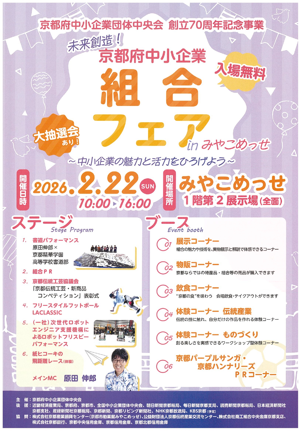 会場では、京都ならではの特産品や技術が集結するほか、ステージイベントや豪華景品が当たる大抽選会も実施されます。